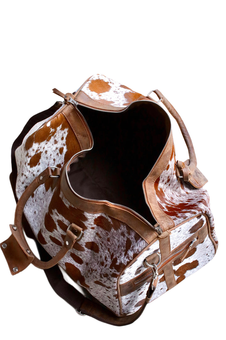 Every hide is unique, giving each Longhorn Duffle its own natural pattern, character, and personality. No two bags are alike — and that’s exactly how we like it. Your bag arrives already one-of-one, ready to tell its own story the moment it hits your shoulder. The hair-on exterior delivers striking texture and durability, while full-grain leather trim, handles, and reinforced straps provide strength that lasts a lifetime.